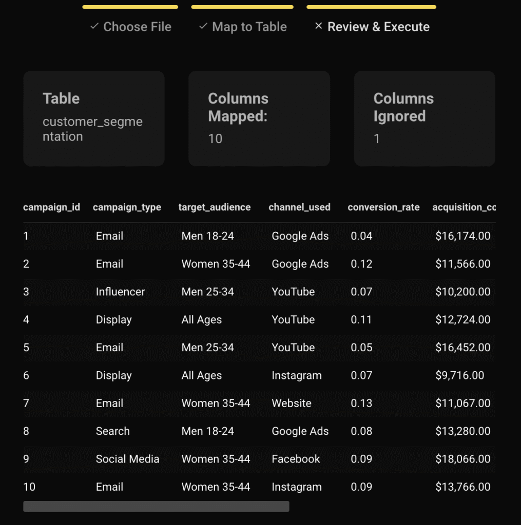 หลังจากทำความสะอาดและวิเคราะห์ข้อมูลแล้ว ข้อมูลที่จัดเก็บไว้ใน AWS RDS (MySQL Database) ถูกนำเข้ามายัง Power BI เพื่อสร้างแดชบอร์ดแสดงผลลัพธ์ของแต่ละแคมเปญอย่างชัดเจน เช่น ค่า ROI, Conversion Rate และ Engagement Score
